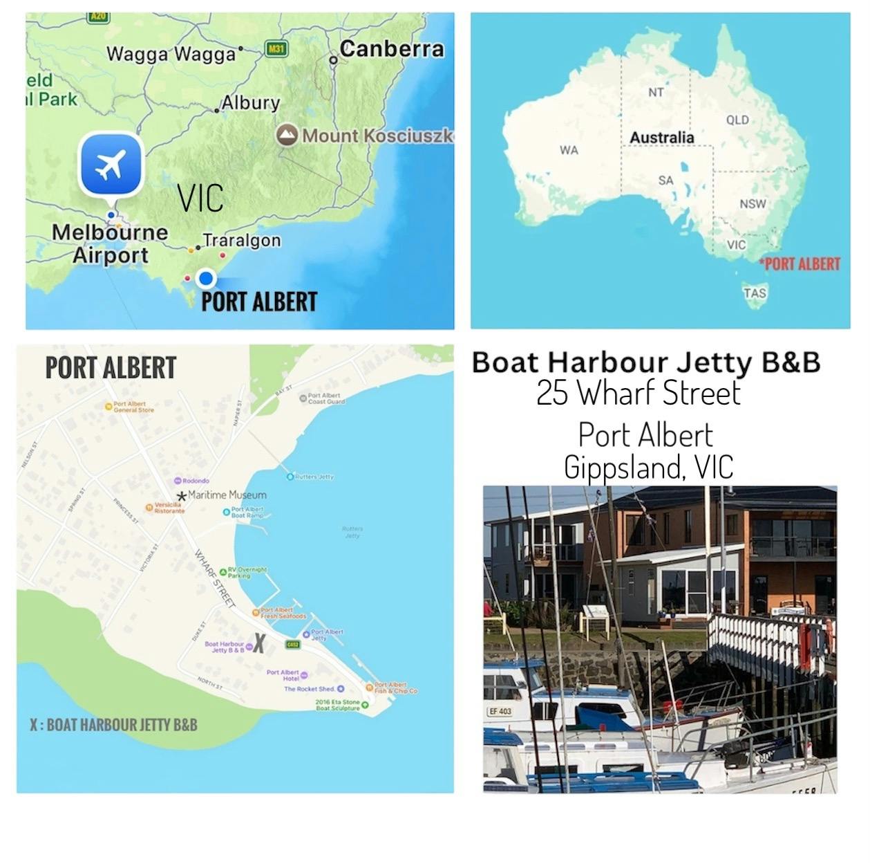 Boat Harbour Jetty B&B is located in Port Albert, Gippsland, Vic. Just over 2.5 hours drive south east of Melbourne.